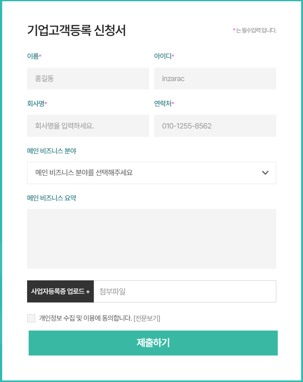 등록신청하시는 기업고객님들께